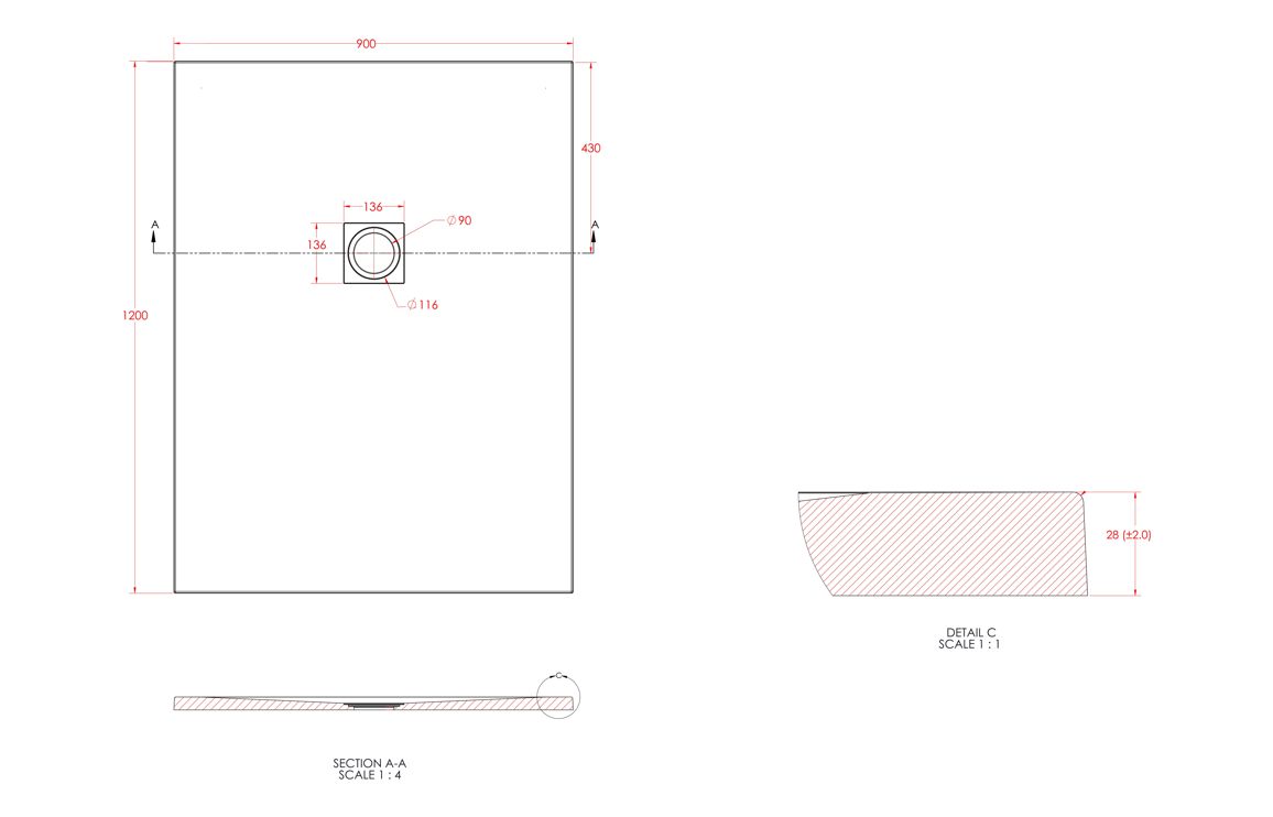 Dimensions: H 25 x W 1200 x D 900mm