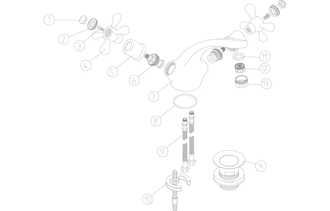 Low Pressure Deck Mounted Chrome Basin Mixer