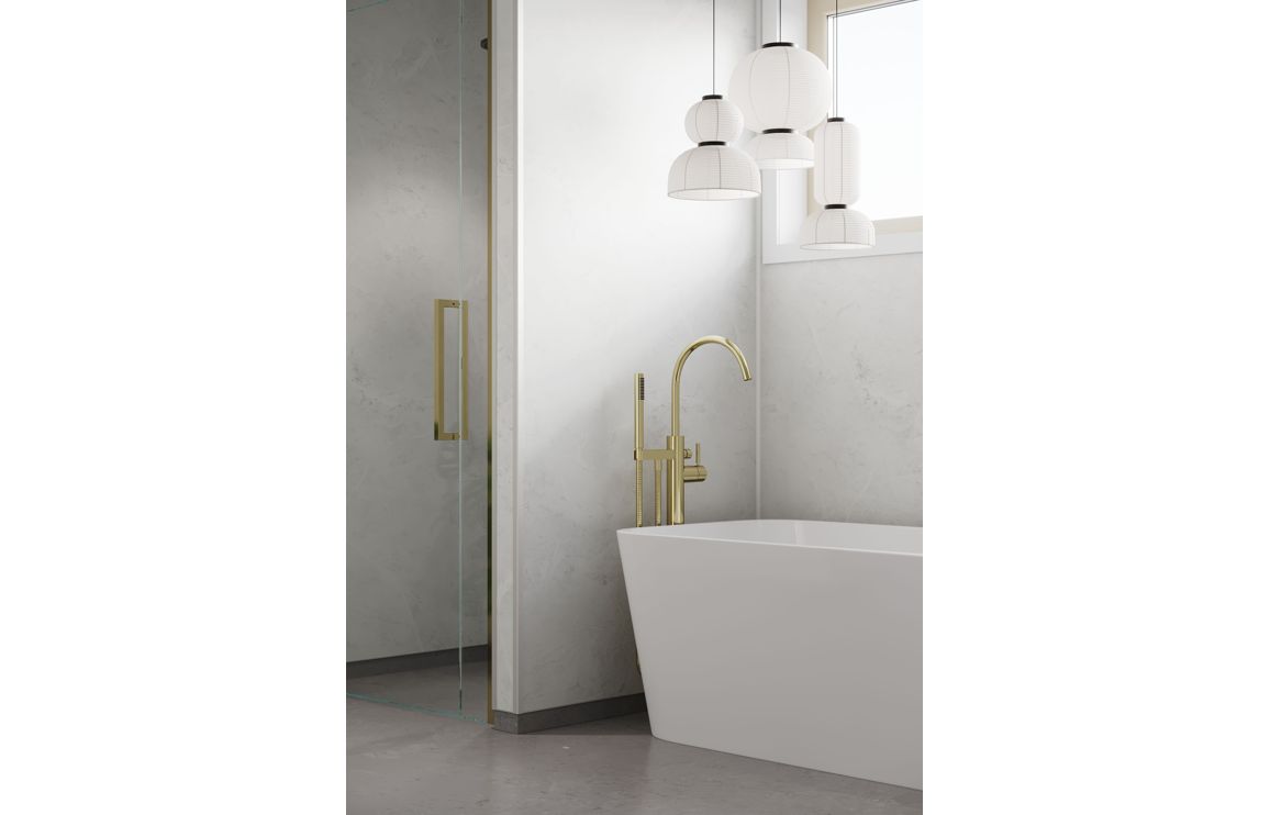 This design is a modern marble effect. You can combine it with soft furnishings and plants to create a calming yet trendy room.