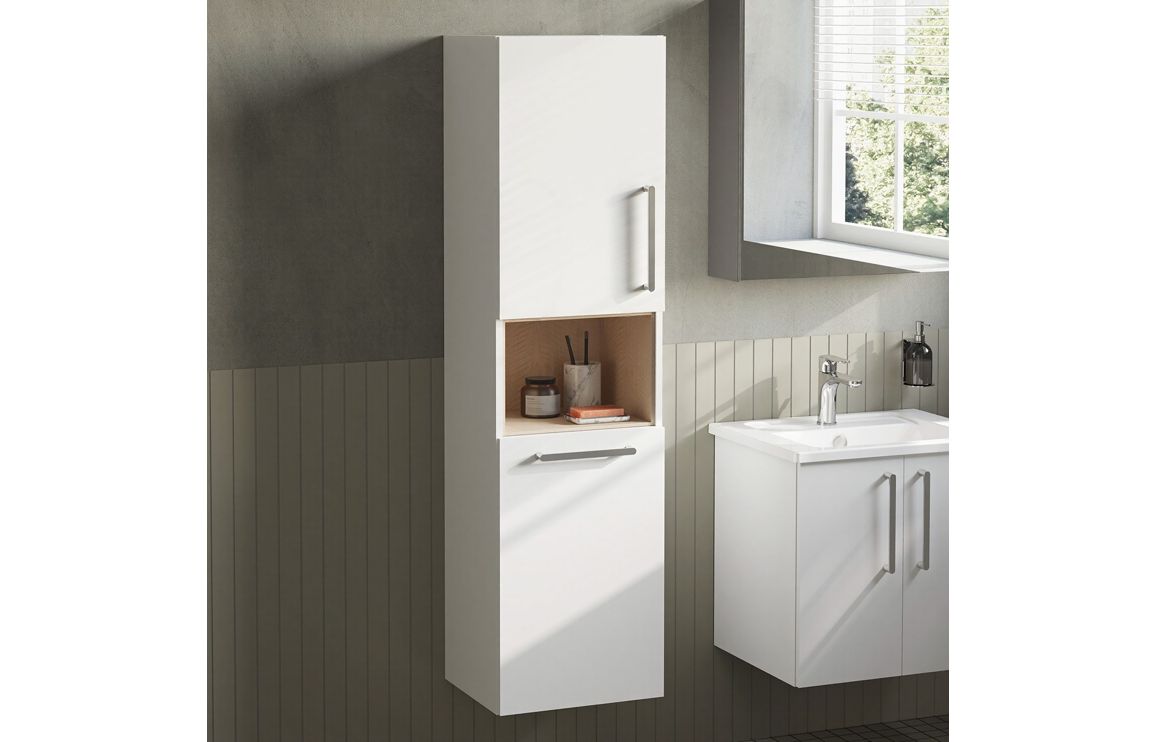 VitrA Root Flat 40cm 2 Door Semi-Tall Unit w/Laundry Basket (LH Hinge) – High Gloss White