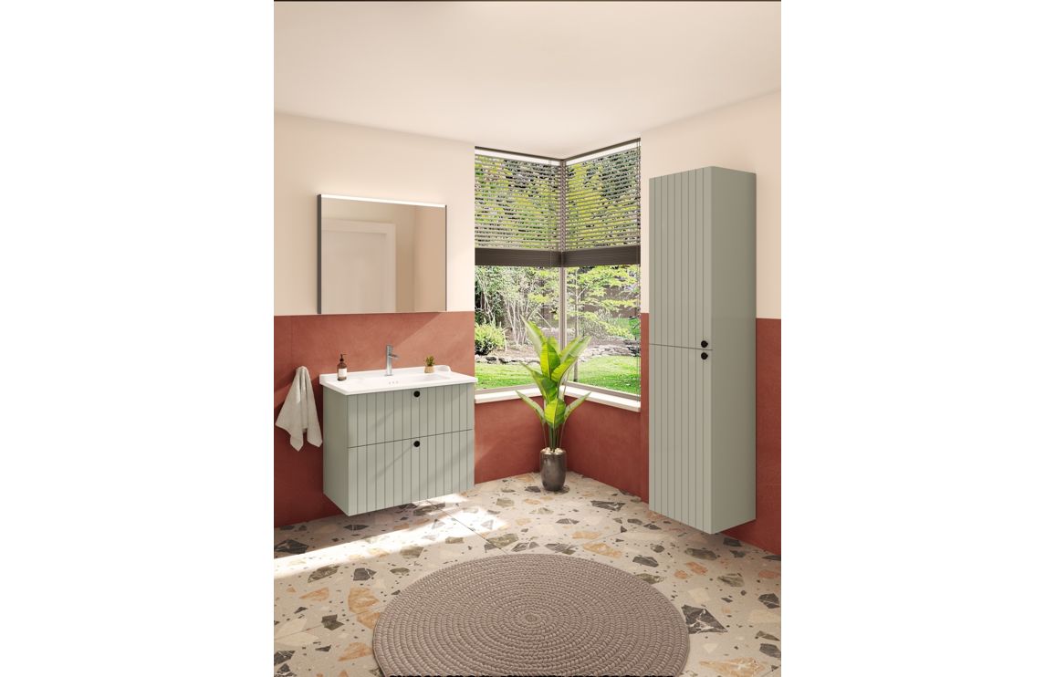 Root furniture comes in three styles – Groove Classic and Flat. Root Groove offers a contemporary bathroom design with matt colour options and stylish door detail.