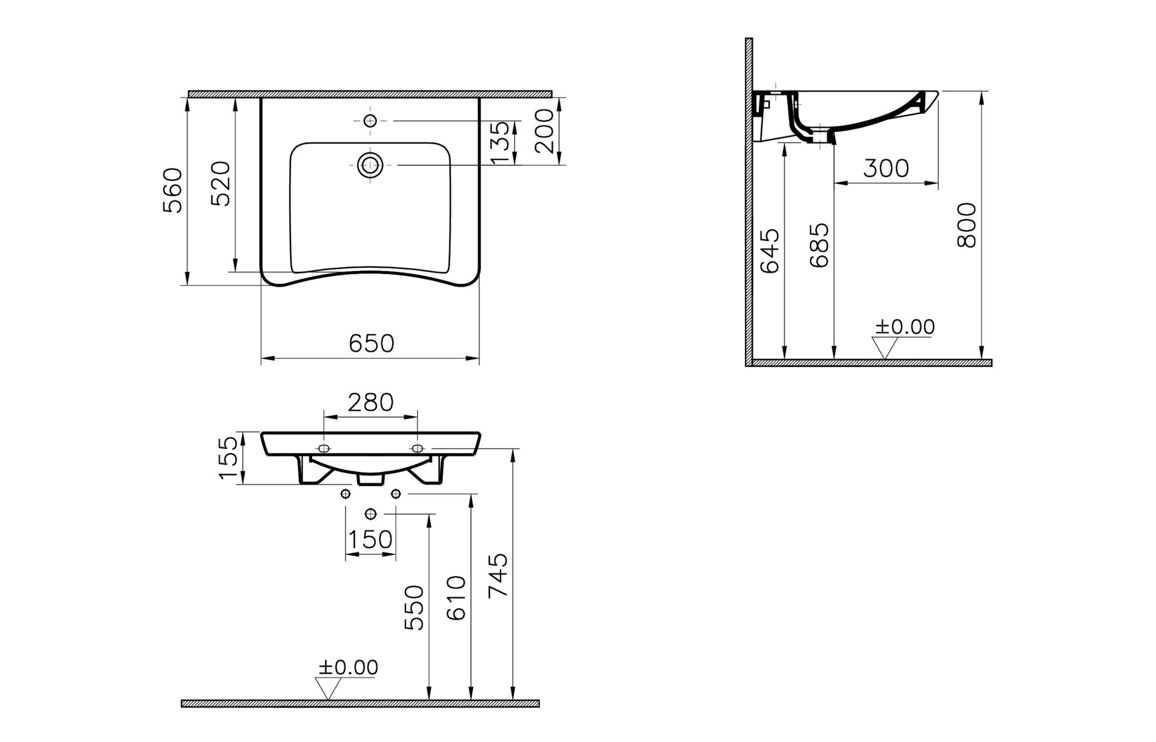 Dimensions: H 155 x W 650 x D 560mm