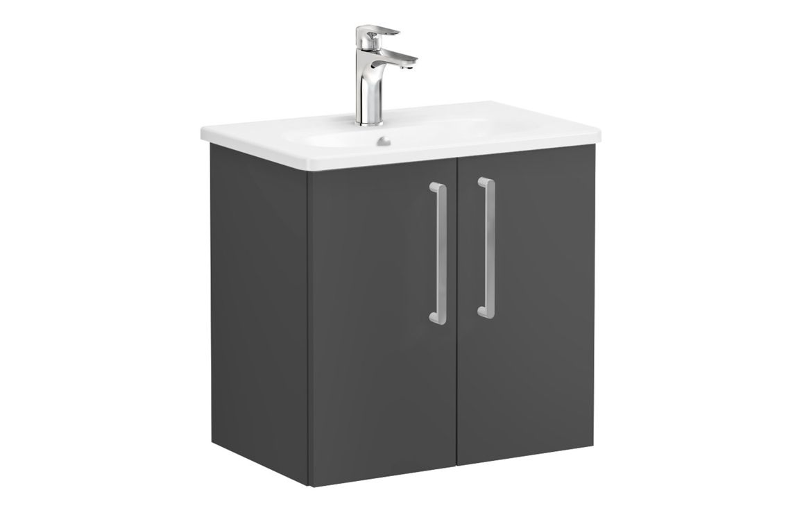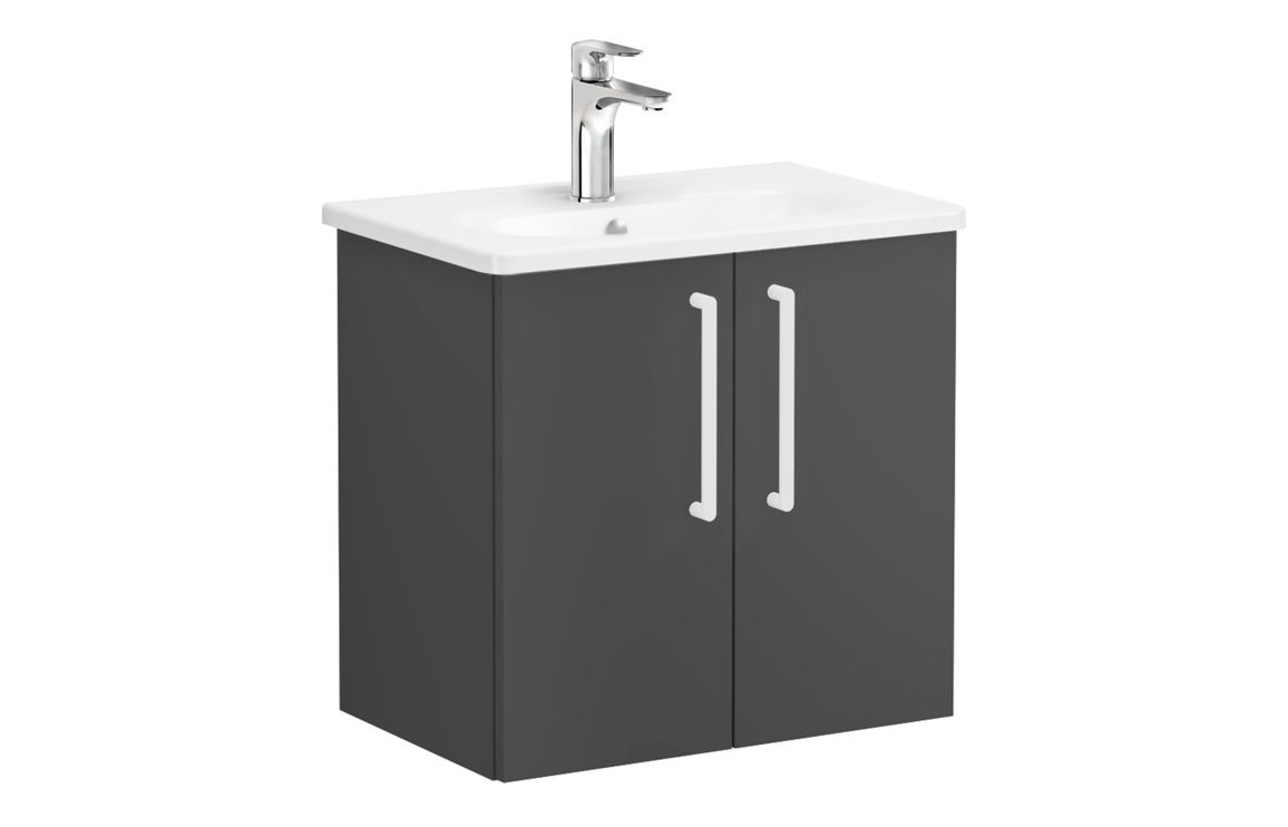 VitrA Zentrum Compact 60cm 2 Door W/H Washbasin Unit – Matt Storm Grey